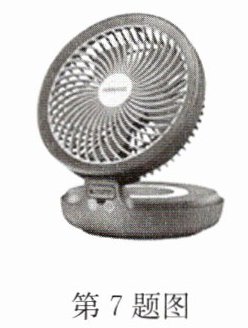 7. 如图所示是一款小型电扇,小明发现它的扇叶上吸附了较多的灰尘,他分析应该是扇叶在转动过程中和空气发生了