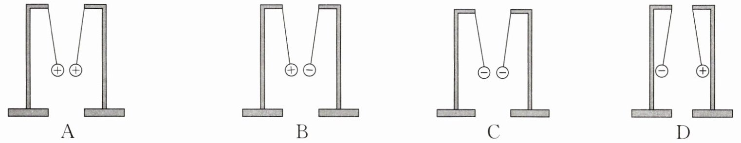 D选项:两小球分别带负电和正电,应相互吸引,图中两球远离,不符合事实。