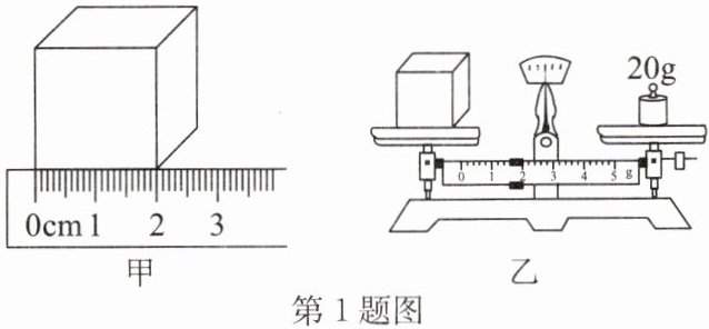 1. (2024·无锡改编)测量正方体金属块的密度. 用刻度尺测量金属块的棱长,如图甲所示;用托盘天平测量质量,如图乙所示,则金属块的质量为