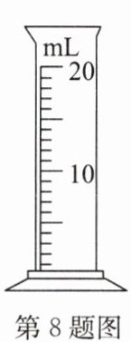 8. 小明家有一枚质量为2.1g的银币,他想用量筒测算出该银币是不是纯银的(ρ银=10.5g/cm³),所用的量筒规格如图所示. 此量筒的分度值是