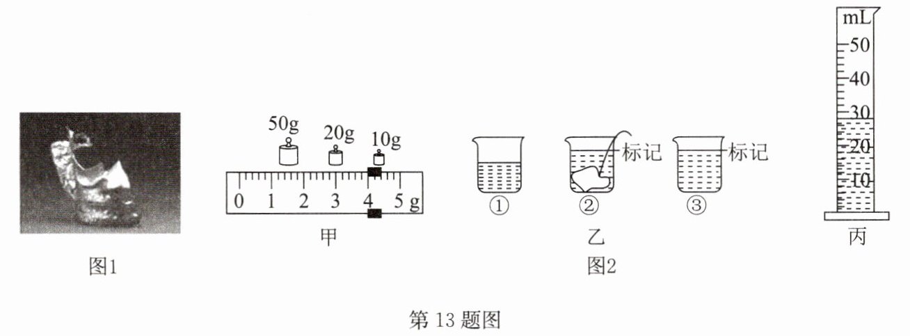 13. “沉睡三千年,一醒惊天下”,三星堆遗址在2021年3月出土了大量文物,如图1所示是出土于其中的黄金面具残片,文物爱好者小张和小敏同学制作了一个面具的模型,用实验的方法来测量模型的密度.