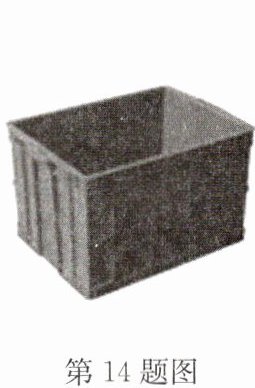 14. 北方的寒冬为制作冰雕所需的冰块,艺术家找来如图所示的长方形箱子,箱内空腔长1m,宽0.8m,高0.5m,在箱内加深度为h的水,一夜之后水完全结冰,且冰块恰好与空腔形状完全一致(已知$ρ_{水}=1.0×10^{3}kg/m^{3},ρ_{冰}=0.9×10^{3}kg/m^{3}$),则h为(
