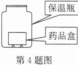 4. 小明在制作一个医用冷藏盒的活动中,为验证猜想保温性能可能与放在保温瓶中的低温物质有关,设计了如下实验:取两个相同的药品盒,其温度均为$t_{0}$,首先将低温物质A和一个药品盒一起放入保温瓶中(如图所示),经过一段时间后测出药品盒的温度为$t_{1}$.取出A和药品盒,随即将温度和质量相等的低温物质B与另一相同的药品盒一起放入该保温瓶中,经过相同的时间后测出另一药品盒的温度为$t_{2}$.由此你认为(