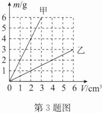 3. (2025·高邮期末)如图所示是甲、乙两物质的m-V图像,分析图像可知:当甲、乙两物质体积相同时,