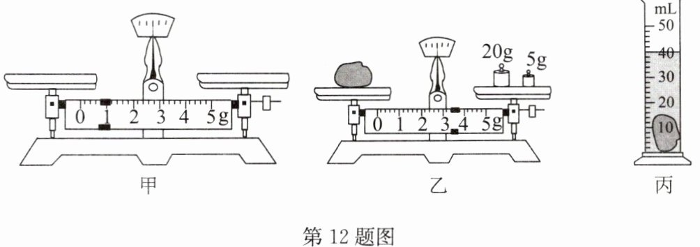 12. 小明使用天平和量筒测量石块的密度。
