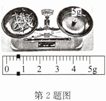 2. 如图所示,用最大测量值 200g、标尺分度值 0.2g 的托盘天平测得 50 枚大头针的质量是