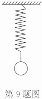 9. 如图所示,弹簧的重力不计,弹簧的上端固定在天花板上,下端悬挂一个小球,系统处于静止状态. 下列几组力中属于相互作用力的是 (