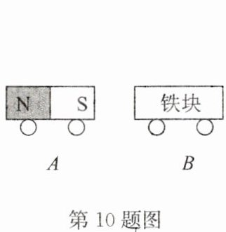 10. (2025·盐城三模)将固定磁体的小车向固定铁块的小车靠近,至一定距离后释放(A、B 两点表示小车的初位置),下列情形正确的是 (