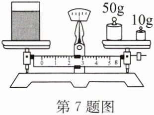 7. (2024·广安)水是人类赖以生存的宝贵资源,节约用水是每个公民应尽的义务. 在对水循环进行探究时,小月将冰块装入一个质量为 20g 的烧杯中,利用天平测出它们的总质量如图所示,由此得出这块冰的质量为
