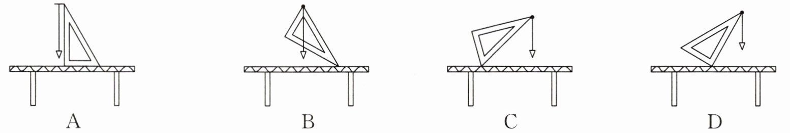 11. 利用铅垂线和三角尺判断桌面是否水平,如图所示的做法正确的是(
