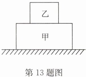 13. 如图所示,重 25N 的长方体物块甲放在水平桌面上,另一重 10N 的长方体物块乙放在物块甲上,则桌面对甲的支持力为