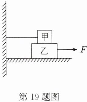 19. 如图,在光滑的水平桌面上叠放甲、乙两木块,将木块乙从右端匀速地抽出来,所用的拉力$F=15N$,则甲、乙两木块所受的摩擦力是(