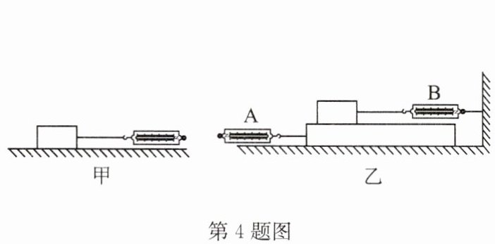 4. 如图甲所示,小明用弹簧测力计拉着木块沿水平方向做匀速直线运动,根据