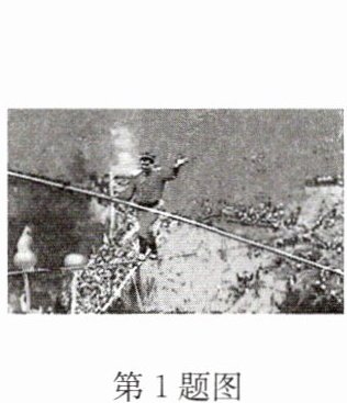 1. 如图所示,某杂技演员在钢丝上行走时,总是不断调整自己的
