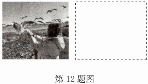 12. (2025·烟台)如图所示,碧海蓝天间,人与海鸥嬉戏互动,和谐共生,是烟台一道浪漫的风景。请在虚线框中用一个点表示一只海鸥,画出当海鸥在空中悬停时,空气对海鸥的作用力 F。