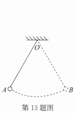 13. 如图所示,在竖直平面内用轻质细线悬挂一个小球,将小球拉至$A$点,使细线处于拉直状态,由静止开始释放小球,不计阻力,小球可在$A$、$B$两点间来回摆动,下列说法正确的是(