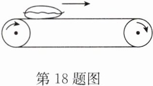 18. 如图,将一袋大米放在匀速向右运动的输送带上,开始时,米袋与输送带间有一段距离的相对滑动,然后米袋随输送带一起匀速运动.当输送带突然制动时,米袋会继续向前滑动一段距离后停下.(回答下列小题,请填以下合适的字母标号)