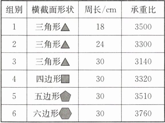 (6)在研究承重比与横截面的形状关系时,除纸板高度、周长相同外,还需要控制相同的因素有