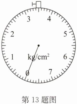 13. (2025·广州)如图是用于测量汽车轮胎内气体压强的胎压计,其数值的单位是“kg/cm²”,表示1cm²的受力面积上,所受的压力大小相当于1kg物体的重力大小.若g取10N/kg,则1kg/cm²相当于 (
