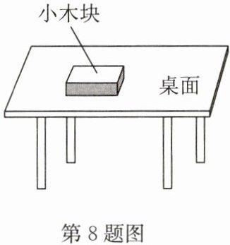 8. 如图,一个长方体小木块放在水平桌面上,要测出它对桌面的压强,老师提供的器材有:刻度尺、天平、量筒.请你选择实验器材,完成下列实验步骤.