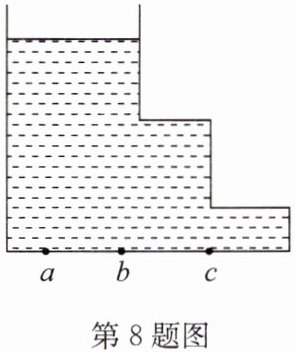 8. 如图所示,容器装有水,其底部 $ a $、$ b $、$ c $ 三处受到水的压强分别为 $ p_{a} $、$ p_{b} $、$ p_{c} $,则以下判断正确的是(