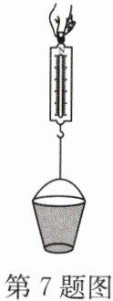 7. (2025·南京期末)如图是小明利用 $ V = 20mL $ 的注射器、小桶、重物(如沙子)、大量程弹簧测力计、刻度尺等器材估测大气压值的情况.