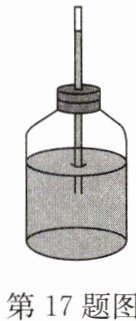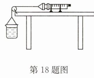 答案:18. C 点拨:当注射器中的活塞开始向左滑动时,G₁=(0.7+0.1)kg×10N/kg=8N,此时,对活塞受力分析可得:f+F=G₁=8N;当注射器中的活塞开始向右滑动时,G₂=(0.5+0.1)kg×10N/kg=6N,此时,对活塞受力分析可得:F-f=G₂=6N,两式联立解得 F=7N.所以,大气压 p=$\frac{F}{S}$=$\frac{7N}{7×10^{-5}m^{2}}$=1×10⁵Pa.