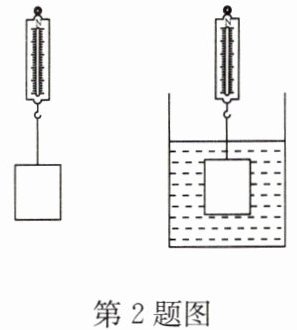 2. 利用如图所示的装置来测量浮力的大小。用弹簧测力计悬挂着物体,测量物体重力的大小,物体静止时,弹簧测力计的示数 $ F_1 $