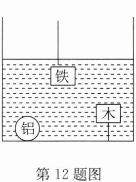 12. (2024·常州模拟)体积相同的铝球、铁块和木块,浸没在液体中的情况如图所示,则它们受到的浮力(