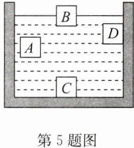 5. 如图所示,A、B是能够自由移动的物体,C、D是容器自身凸起的一部分,现往容器内注入一些水,则下列说法错误的是 (