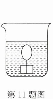 11. 如图,气球下面用细线悬挂一石块,它们恰好悬浮在水中.已知石块与气球的总重力为 $ G_{总} $,则气球受到的浮力 $ F_{浮} $