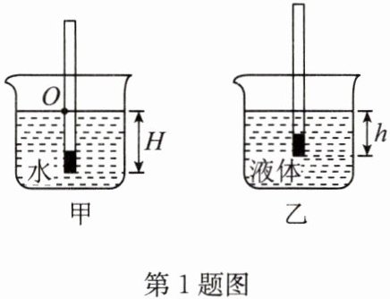 (3) 吸管漂浮在其他液体中时,如图乙所示,液面下方的深度 h =