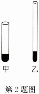 2. 综合实践课上,物理老师发给每个学生一段相同的金属丝和体积相同的松木棍,让学生们自制一支“密度计”. 下课前同学们纷纷拿出自己的作品(如图甲、乙),将金属丝缠绕在松木棍一端而不在中间,是为了降低“密度计”的