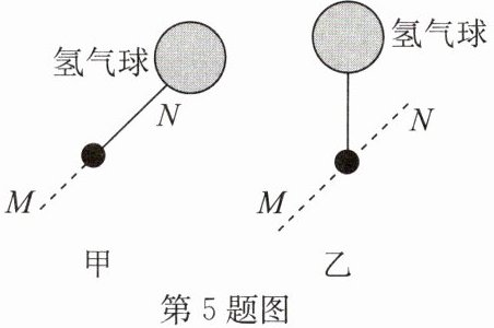 5. (2025·涟水县模拟)氢气球下吊一小重物,若不计空气阻力的影响,小重物恰沿$MN$方向做匀速直线运动时,正确的图是