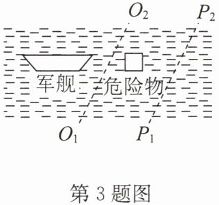 3. 一艘军舰停泊在平静的海里,突然发现不远处有一危险漂浮物,为使危险漂浮物远离军舰,水手使用消防水管在漂浮物旁侧喷水,如图所示,水管应沿着