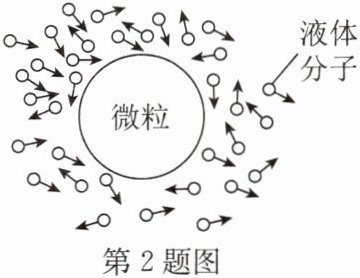 2. 如图所示,悬浮在液体中的固体微粒受到液体分子的撞击,从而出现不同的运动状态,下列说法错误的是(