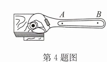 4. (2025·南通海门区月考)如图所示,分别在 $ A $、$ B $ 两点施力,将扳手顺时针旋转时,在 $ B $ 点用力更容易拧紧螺母,说明力的作用效果跟