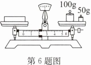 6. (2024·重庆)小明将天平放在水平桌面上测量一物体的质量. 在游码调零后,发现指针偏左,应将平衡螺母向