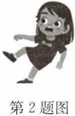 2. 体育课上小红和小丽比赛“单脚站立”,看谁保持平衡的时间久,小红率先出局,如图所示是小红失去平衡时的样子,小红不能保持平衡的原因是(