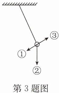 3. (2024·枣阳模拟)如图所示,小球用细绳固定在天花板上,小球往复摆动。假如当小球某一次摆动到右端最高点时绳子断开且小球所受的力全部消失,则小球将会(