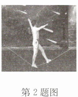 2. (2025·南通期中)如图所示,走钢丝的杂技演员,两只脚都站在直径为 2cm 的钢丝上,且脚底与钢丝平行,演员对钢丝的压强最接近于(