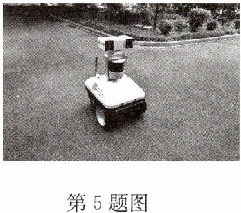 5. (2025·无锡期末)如图所示是四轮机器人辅助警方在室外安防巡逻时的情景,其空载时的质量为100kg.每个车轮与水平地面的接触面积为$2.5× 10^{-3}m^{2}$.负载后对水平地面的最大压强可达$5× 10^{5}Pa$,g取10N/kg,求: