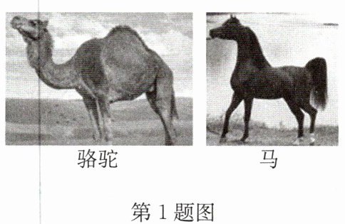 1. (2024·常州模拟)骆驼的体重比马大不了一倍,而它的脚掌面积是马蹄的三倍,这为它在沙漠行走提供了有利条件.如图所示是站立在水平地面上的骆驼和马,下列说法正确的是(