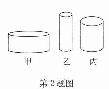 2. 同种材料制成的甲、乙、丙三个圆柱体,它们的质量、粗细、高度各不相同,把它们竖直放在水平桌面上,如图所示,则(