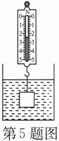 5. (2025·连云港模拟)重为$10N$的物块用细线挂在弹簧测力计挂钩上,当物块浸没在水中静止时弹簧测力计的示数如图所示,则物块所受的浮力大小为