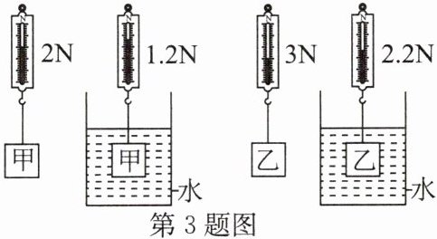 3. (2025·成都)在探究“影响浮力大小的因素”实验中,小明选用体积相同的实心金属块甲和乙,实验过程如图所示,他探究的问题是(