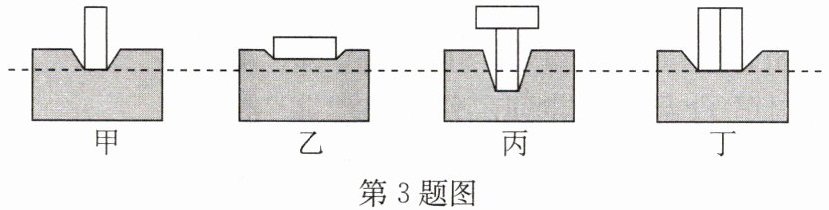 C.丙图中将上面的砖块竖直重叠放置在下面的砖块上, 海绵的凹陷程度不变