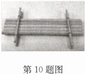 10. (2025·常州期末)学习了浮力知识后,科技小组的同学用筷子自制了一个木筏模型,如图所示. 木筏的质量为$100g$,体积为$180cm^{3}$.($g$取$10N/kg$)