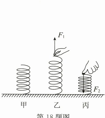 18. (2024·镇江期末)如图甲所示,弹簧的一端固定在木板上,如图乙所示,用手向上拉弹簧,说明力能使物体发生