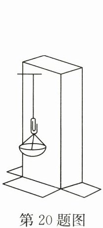 20. 如图所示,用橡皮筋、回形针、棉线、小瓶盖、铁丝和刻度尺做一个橡皮筋测力计,放入小瓶盖中的物体越重,橡皮筋伸长